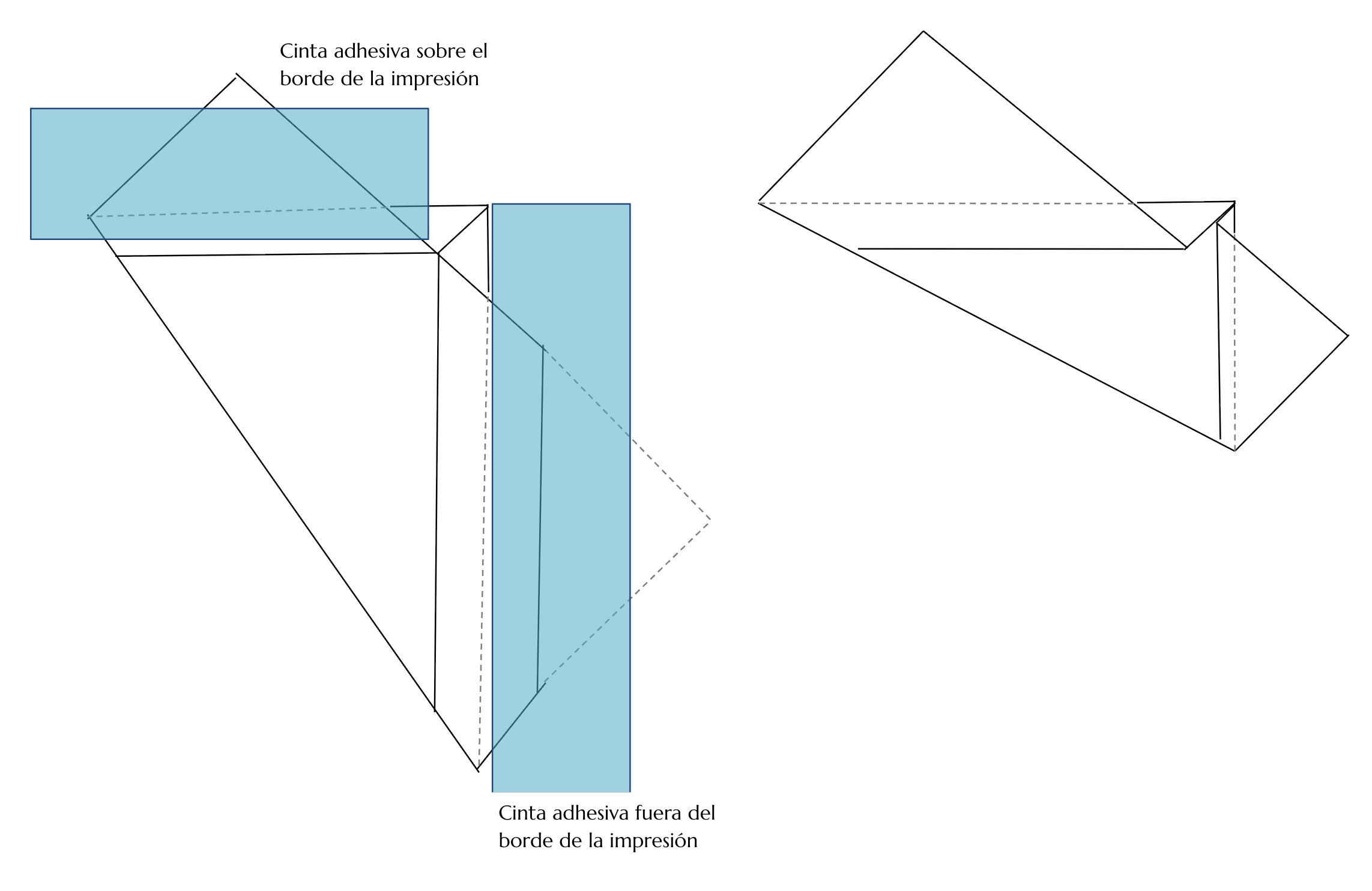 Existen dos métodos para fijar los esquineros con cinta adhesiva, con tres variantes diferentes cada una (como se ve en el esquema).